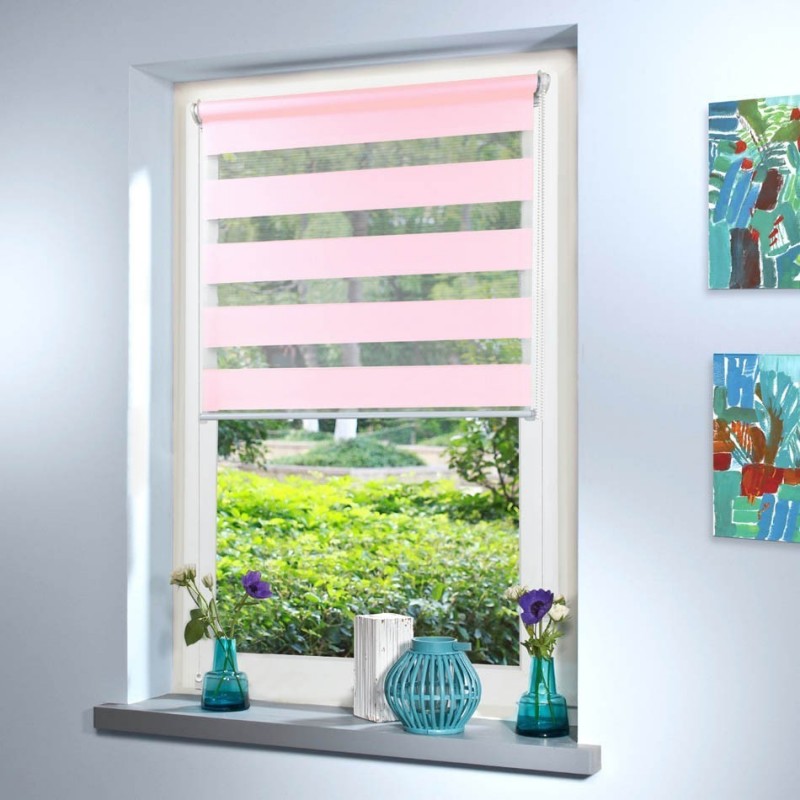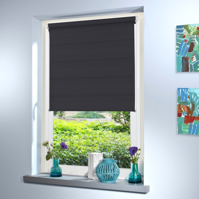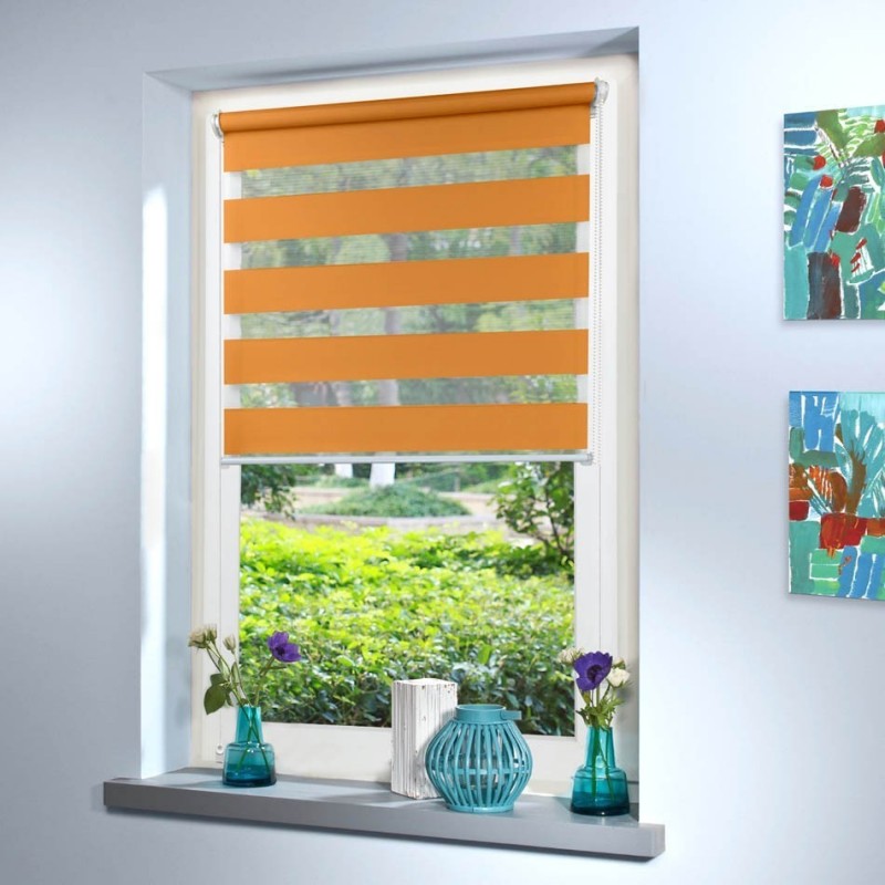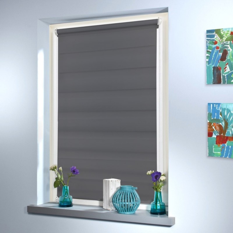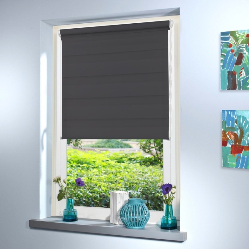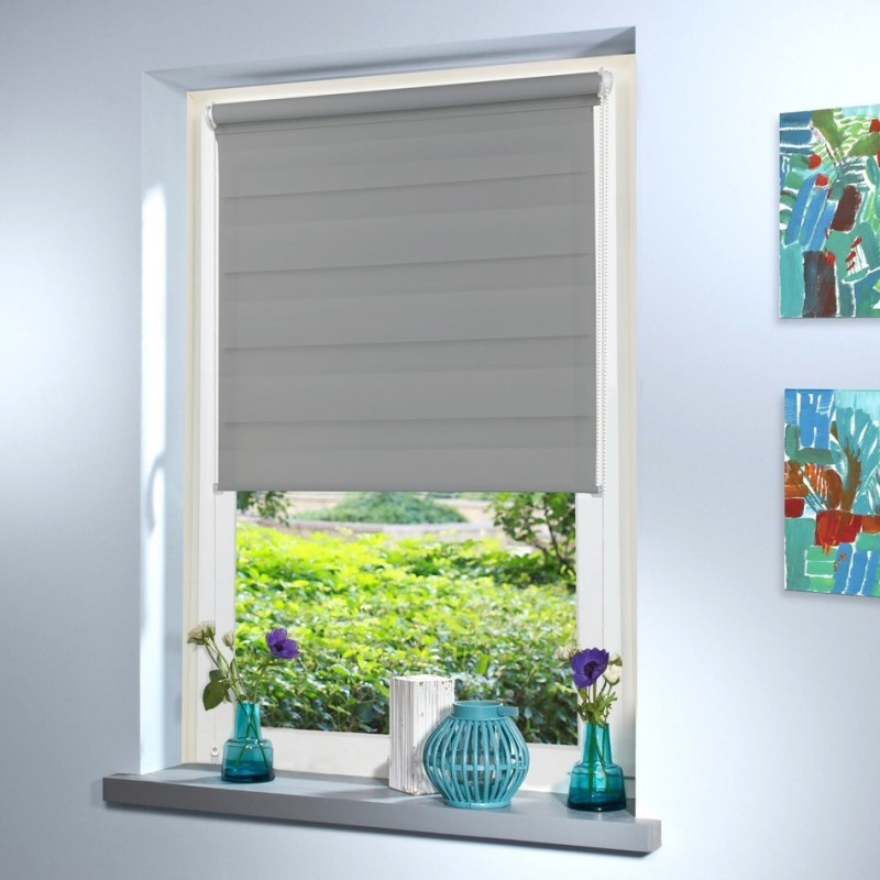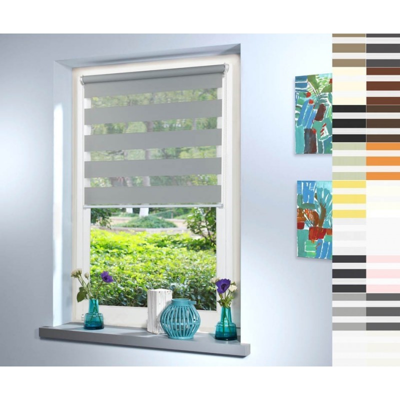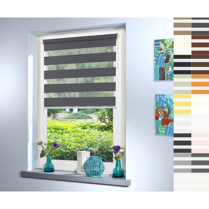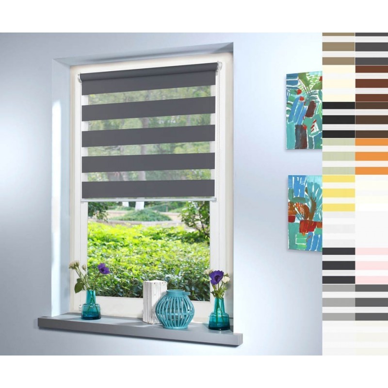 Doppelrollo nach Maß, hochqualitative Wertarbeit, alle Größen und 18 Farben verfügbar, inkl. Seitenführung, Befestigung: Klemmfix, Montage an Wand oder Decke