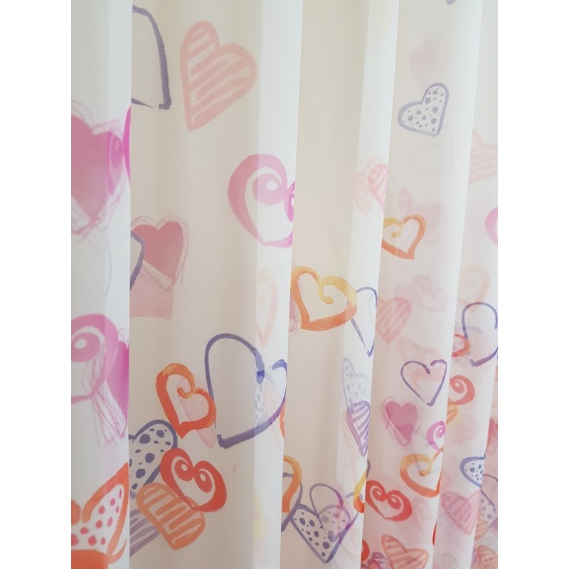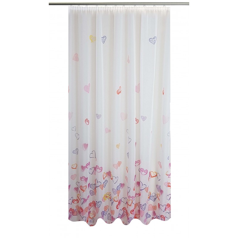 Gardine nach Maß "Hearts", inklusive Blei- und Kräuselband, Höhe: 70 bis 295 cm, Breite: 20 bis 2000 cm, Verhältnis Dekorationsbreite zu Stoffbreite: ca. 1 zu 2 - das Maß, das Sie bei der Bestellung angeben, ist die Stoffbreite, nicht die Dekorationsbreite (siehe Erklärung in der Beschreibung)