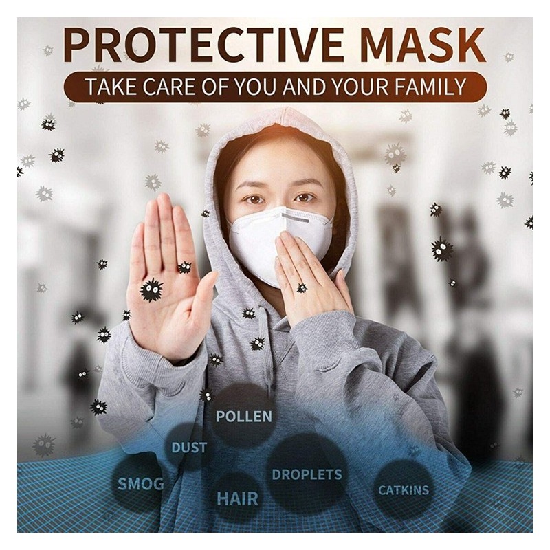 Integrierte Filter reduzieren 95% des Staub-, Chemikalien-, Dämpfe- und Partikelaufkommens beim Einatmen. Es werden Fahrzeug- und Indutrieabgase, Staub, Pollen, schwimmender Staub, Keime, PM2.5 gefiltert.
