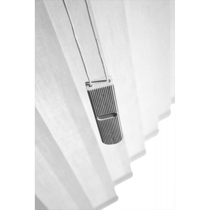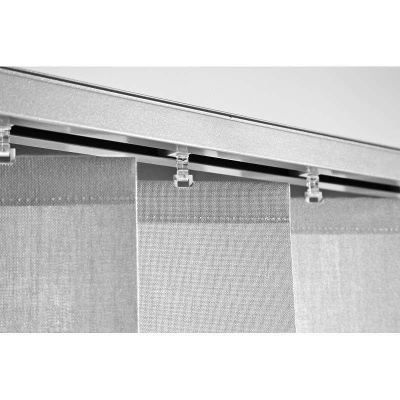 In den einzelnen Lamellen eingenähte Beschwerungsplatten unterstützen die senkrechte Ausrichtung des Lamellenvorhanges. Die angegebene Höhe ist die Höhe der Lamelle ohne Deckenschiene. Die Deckenschiene hat eine Höhe von 3 cm.