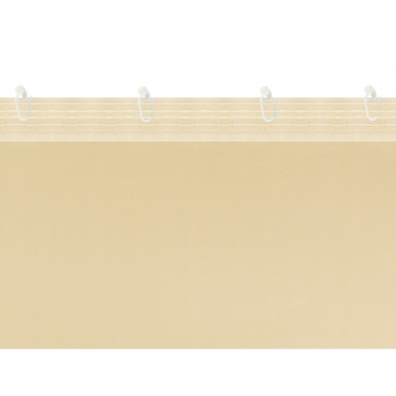 Mithilfe des eingenähten Automatik-Faltenbandes (Verhältnis 1:2,5) können Sie Ihre maßgefertigte Fensterdekoration kinderleicht professionell dekorieren. Ziehen Sie die Gardine einfach auf die gewünschte Breite zusammen. Dadurch entsteht alle 10 cm eine wunderschön fallende Falte. Die Stoffbreite reduziert sich um ca. 60% durch den regelmäßigen Faltenwurf des Vorhanges. Das Verhältnis von Dekorationsbreite zu Stoffbreite beträgt somit ca. 1:2,5 mit einer 3er Falte.