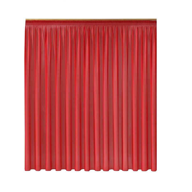 Durch den gleichmäßigen Faltenwurf reduziert sich die Stoffbreite um ca. 50%. Das Verhältnis von Dekorations- zu Stoffbreite beträgt somit ca. 1:2.