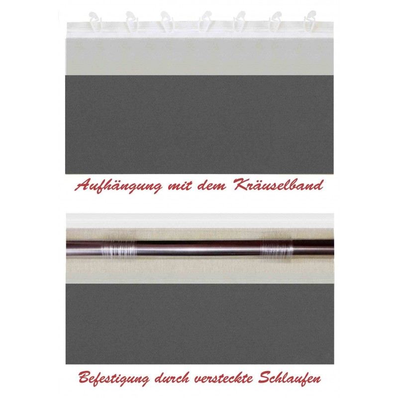 Diese Gardine ist eine Anfertigung nach Maß und daher nicht umtauschbar, außer bei Qualitätsmängeln.