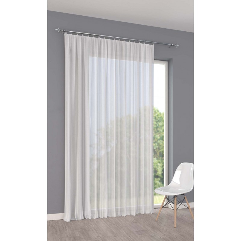 Die Gardine nach Maß mit Kräuselband zaubert durch die eingewebten Effektgarne und den kunstvollen Stoff eine hochwertige Atmosphäre in Ihr Zuhause.