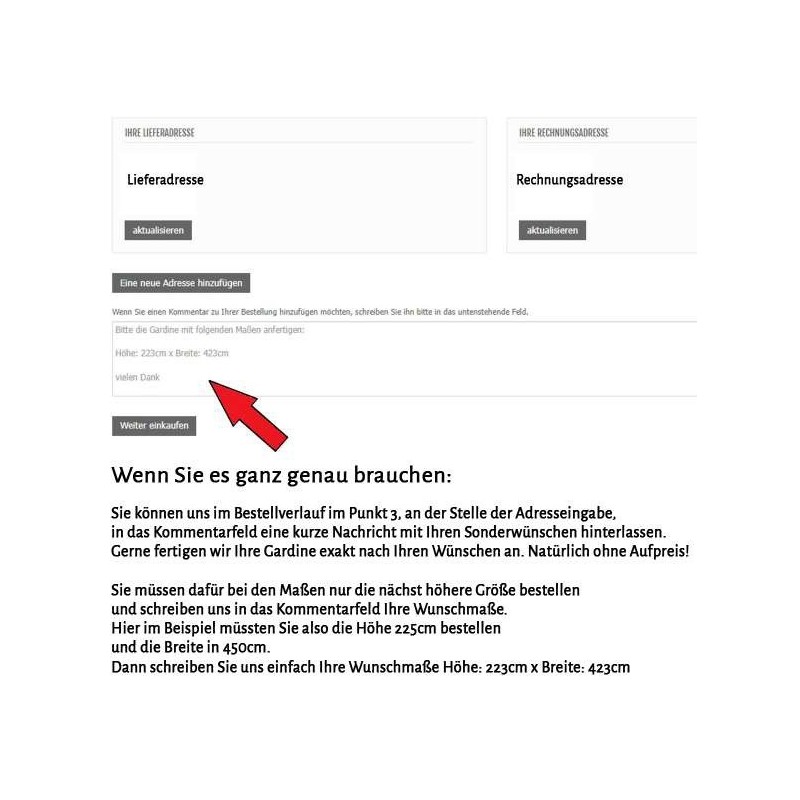 Diese Gardine ist eine Anfertigung nach Maß und daher - außer bei Qualitätsmängeln- nicht umtauschbar.